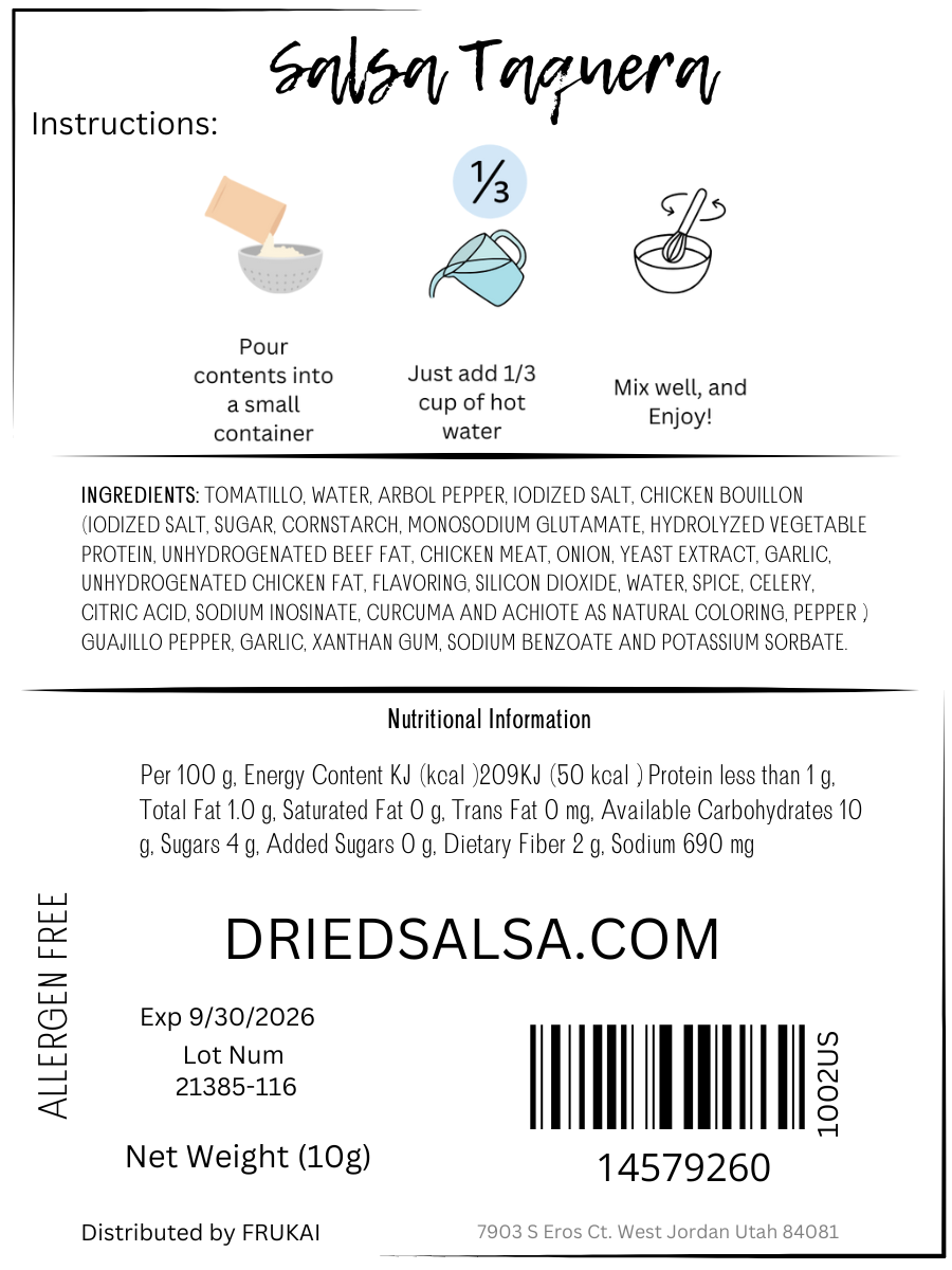 Bring the bold, smoky heat of Mexican street tacos straight to your kitchen with our Dried Salsa Taquera. Made from fire-roasted chiles, sun-dried tomatoes, and authentic spices, this salsa packs a punch of flavor that’s perfect for tacos, burritos, grilled meats, and more.